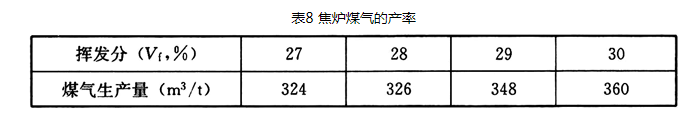 4.2.8 煤干馏制气产品产率的影响因素很多,有条件时应作煤种配煤试验来确定。但在考虑设计方案而缺乏实测数据时可采用条文中的规定。
