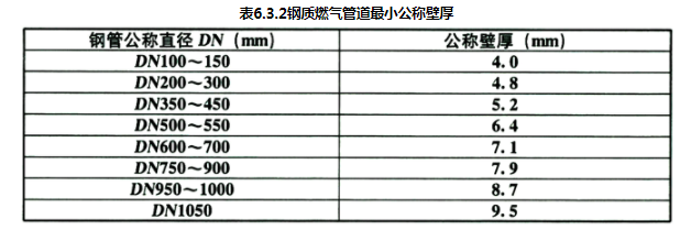 次高压钢质燃气管道直管段计算壁厚应按式(6.4.6)计算确定。最小公称壁厚不应小于表6.3.2的规定。