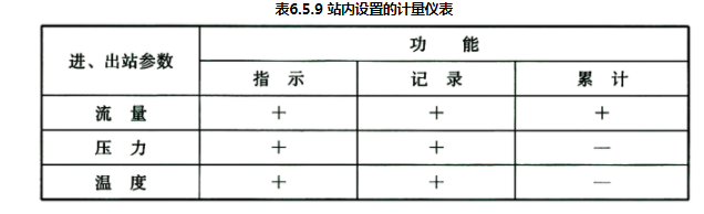1 站内设置的计量仪表应符合表6.5.9的规定;
