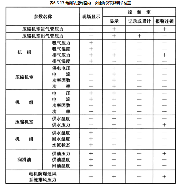 6.5.17 储配站控制室内的二次检测仪表及操作调节装置宜按表6.5.17规定设置。