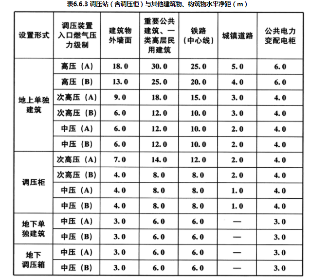 6.6.3 调压站(含调压柜)与其他建筑物、构筑物的水平净距应符合表6.6.3的规定。