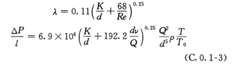 K——管壁内表面的当量绝对粗糙度,对钢管:输送天然气和气态液化石油气时取0.1mm;输送人工煤气时取0.15mm。