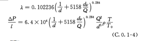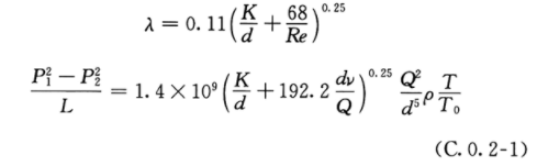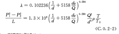 注:除附录C所列公式外,其他计算燃气管道摩擦阻力系数(λ)的公式,当其计算结果接近本规范式(6.2.6-2)时,也可采用。