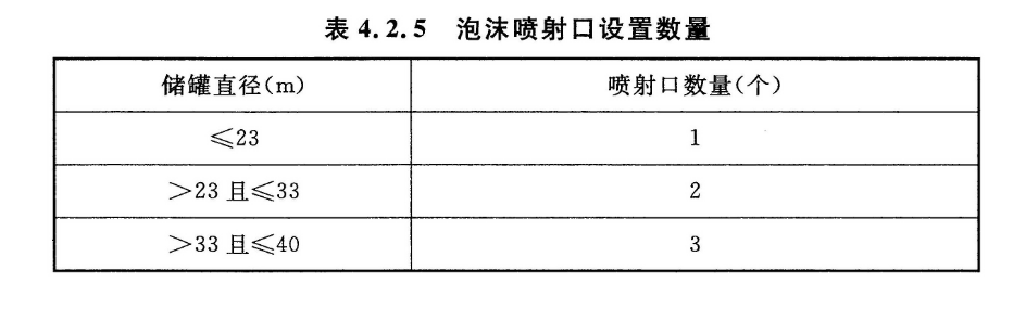 注:对于直径大于40m的储罐,其横截面积每增加400㎡应至少增加1个泡沫喷射口。