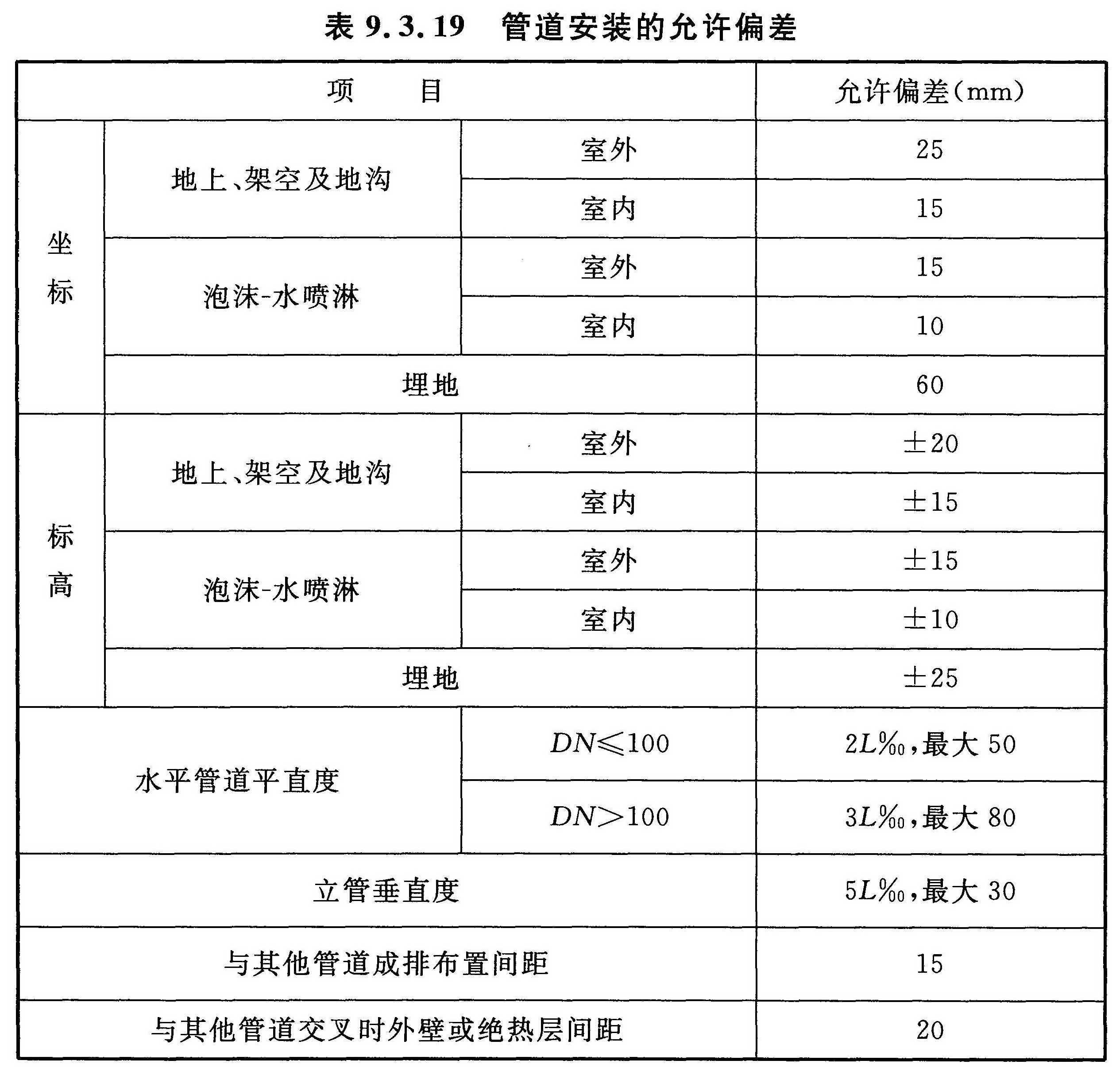 4 管道安装的允许偏差应符合表9.3.19的规定。