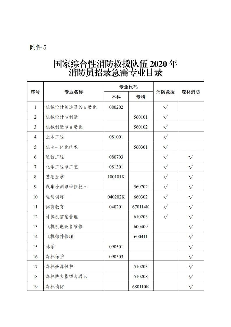 5.国家综合性消防救援队伍2020年消防员招录急需专业目录