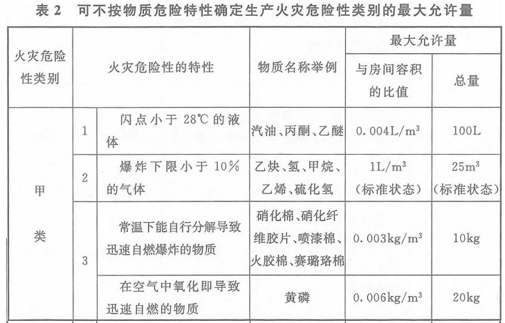 (2) 一般情况下可不按物质危险特性确定生产火灾危险性类别的最大允许量,参见表2。