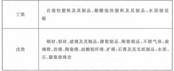 3.1.5丁、戊类物品本身虽属难燃烧或不燃烧物质,但有很多物品的包装是可燃的木箱、纸盒、泡沫塑料等。据调查,有些仓库内的可燃包装物,多者在100kg/m²~300kg/m²,少者也有30kg/m²~50kg/m²。因此,这两类仓库,除考虑物品本身的燃烧性能外,还要考虑可燃包装的数量,在防火要求上应较丁、戊类仓库严格。