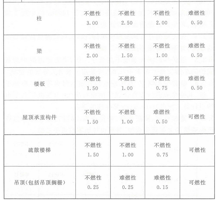 注:二级耐火等级建筑内采用不燃材料的吊顶,其耐火极限不限。