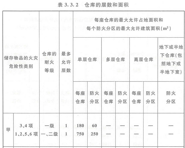 3.3.2 除本规范另有规定外,仓库的层数和面积应符合表3.3.2的规定。