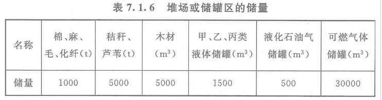 7.1.6 可燃材料露天堆场区,液化石油气储罐区,甲、乙、丙类液体储罐区和可燃气体储罐区,应设置消防车道。消防车道的设置应符合下列规定: