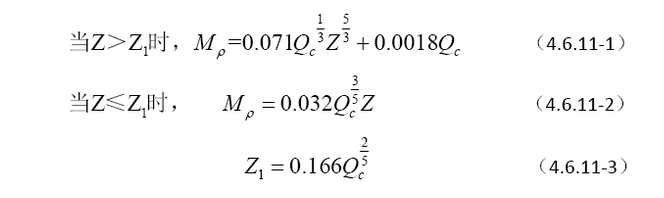 4.6.6 排烟量或排烟窗面积应按照火灾场景中所形成烟羽流类型,根据火灾功率、清晰高度、烟羽流质量流量及烟羽流温度等参数计算确定,但对本标准第4.6.3条、第4.6.5条中已明确给出的设计值,可以按其规定计算排烟量和排烟窗面积。本标准所列公式仅适用于设计阶段对排烟量的计算,不适用于特殊工程的性能化评估。