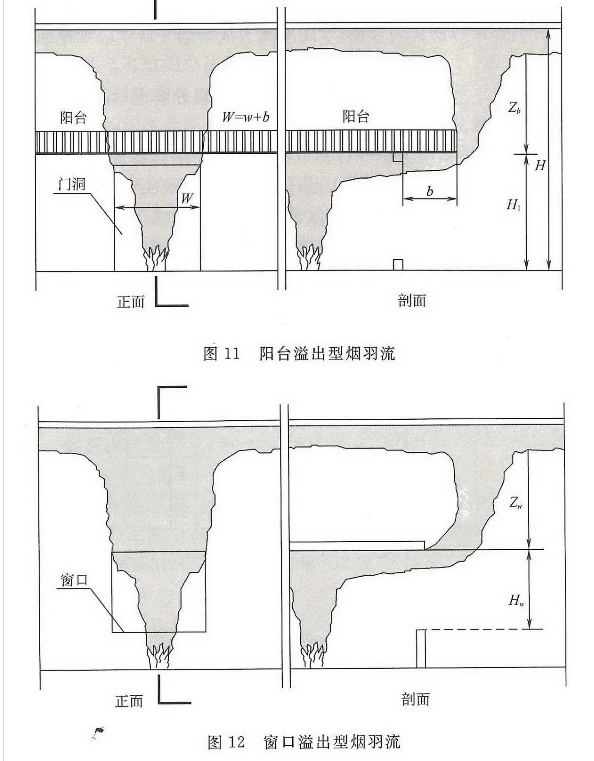 本条第2款,阳台溢出型烟羽流公式适用于Zb<15m的情形,当Zb≥15m时,可参照美国消防工程师协会标准 NFPA92《Standard for Smoke Control