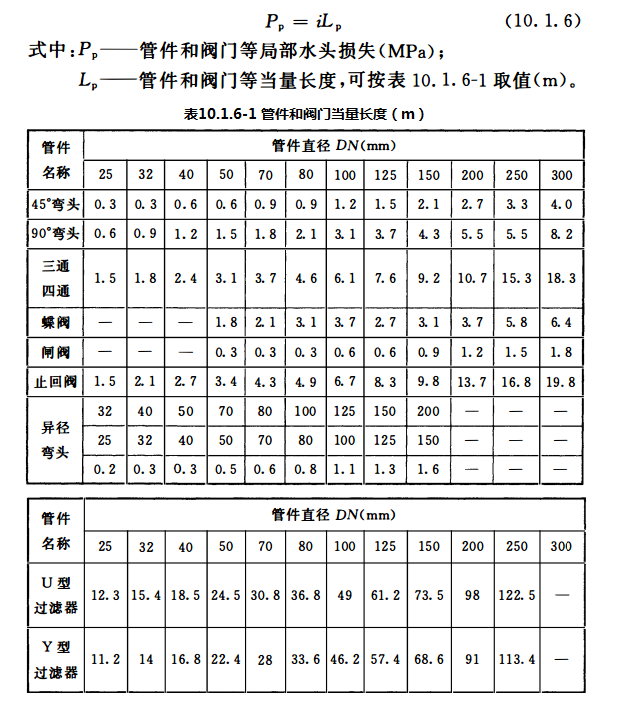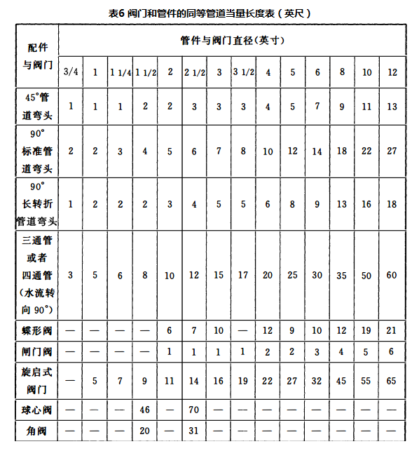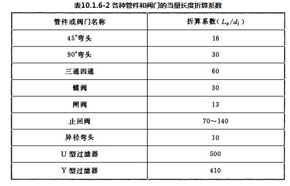 3 表中没有提供管件和阀门当量长度时,可按10.1.6-2提供的参数经计算确定。