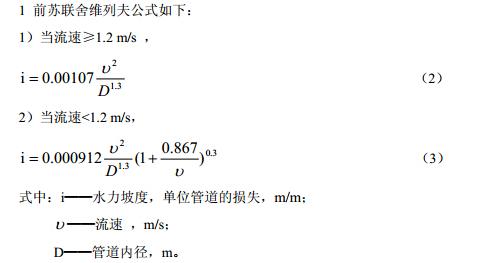 我国在21世纪以前给水系统水力计算通常采用前苏联舍维列夫公式,随着2003年版的国家标准《建筑给水排水设计规范》GB