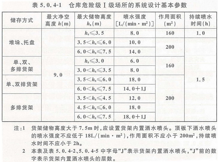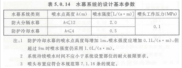 系统的喷水强度应按本规范表5.0.1、表5.0.4-1~表5.0.4-5的规定值确定;