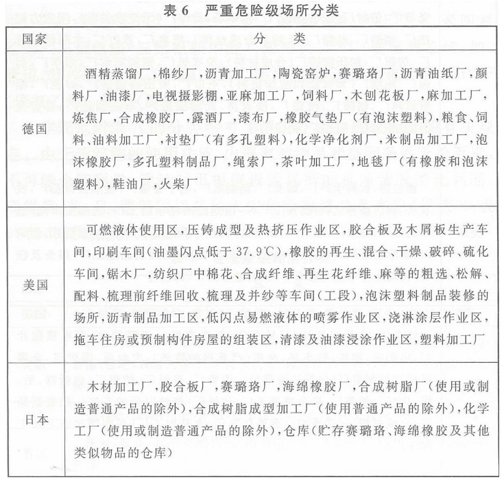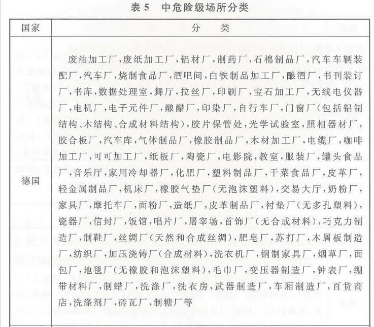 Ⅱ级)、严重危险级(Ⅰ级、 Ⅱ级)和仓库危险级( Ⅰ级、 Ⅱ级、 Ⅲ级)。