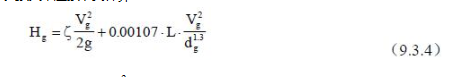 9.3.4 本条规定了节流管水头损失的计算公式。节流管的水头损失包括渐缩管、中间管段与渐扩管的水头损失。即: