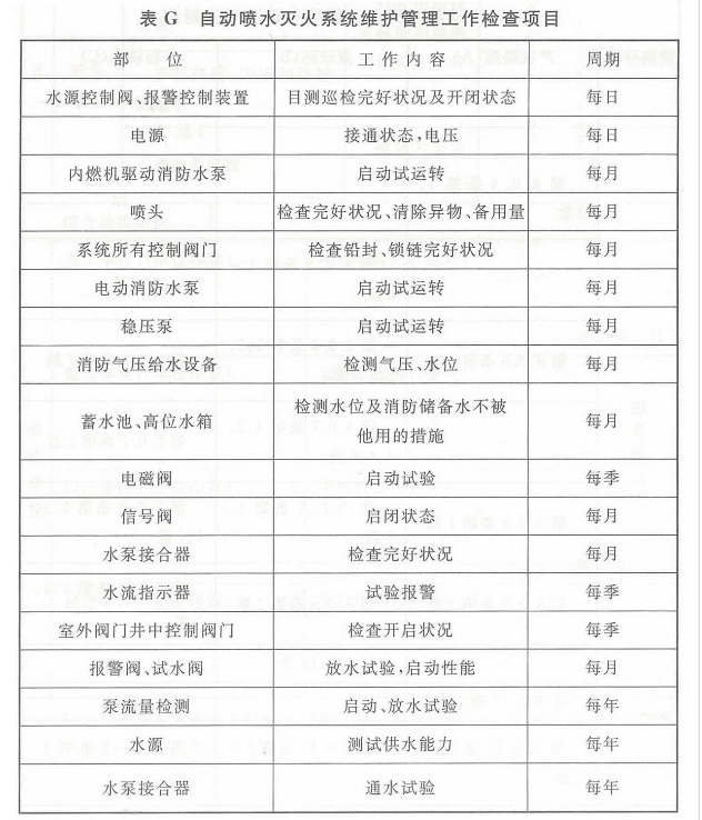 自动喷水灭火系统维护管理工作检查项目