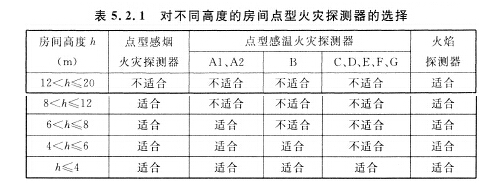 本条是参考德国(VdS)《火灾自动报警装置设计与安装规范》制定的。在执行中应注意这仅仅是按房间高度对探测器选择的大致划分,具体选择时尚需结合房间的火灾危险性和探测器的类别来进行设计,如果判定不准确时,仍需按本规范第
