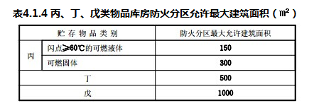 4.1.4 丙、丁、戊类物品库房的防火分区允许最大建筑面积应符合表4.1.4的规定。当设置有火灾自动报警系统和自动灭火系统时,允许最大建筑面积可增加1倍;局部设置时,增加的面积可按该局部面积的1倍计算。