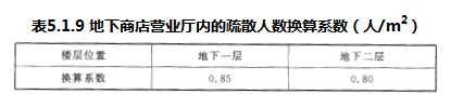 地下商店每个防火分区的疏散人数,应按该防火分区内营业厅使用面积乘以面积折算值和疏散人数换算系数确定。面积折算值宜为70%,疏散人数换算系数应按表5.1.9确定。经营丁、戊类物品的专业商店,可按上述确定的人数减少50%。