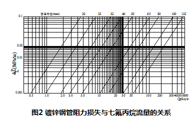 本款中所列(3.3.15-5)式和图2用于镀锌钢管七氟丙烷管流的阻力损失计算;当系统管道采用不锈钢管时,其阻力损失计算可参考使用。