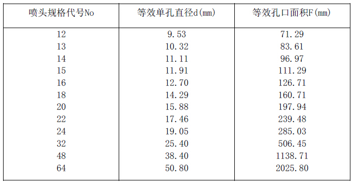 注:喷头规格代号系表示具有0.98 流量系数的等效单孔直径与0.79375mm