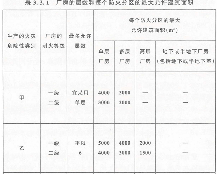 除本规范另有规定外,厂房的层数和每个防火分区的最大允许建筑面积应符合表3.3.1的规定。