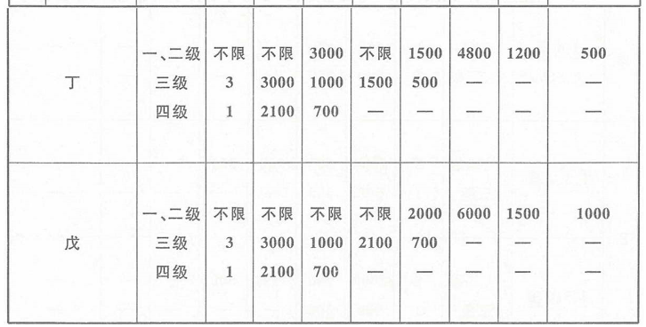 一、二级耐火等级粮食平房仓的最大允许占地面积不应大于12000m²,每个防火分区的最大允许建筑面积不应大于3000m²;三级耐火等级粮食平房仓的最大允许占地面积不应大于3000m²,每个防火分区的最大允许建筑面积不应大于1000m²。