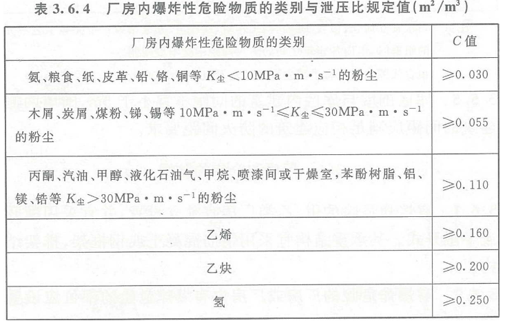 C——泄压比,可按表3.6.4选取(m²/m³)。