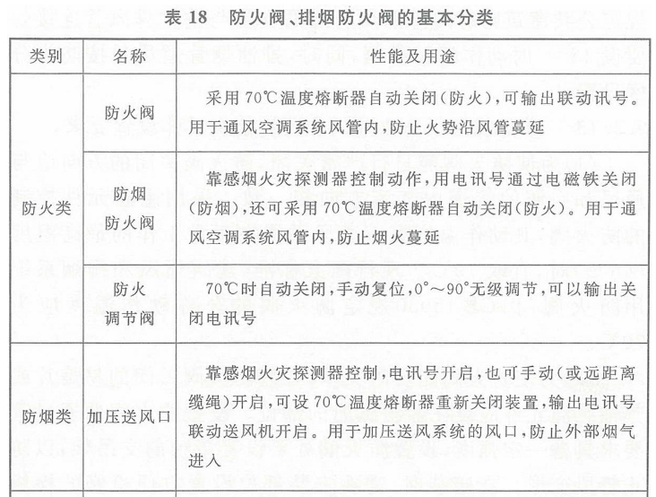 有关防火阀的分类,参见表18。