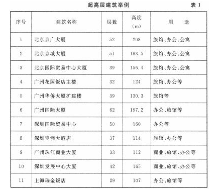 2.总结了国内高层建筑实际防火设计经验,如表1中列出的高层建筑都分别作了较深入的了解,将其合理部分、行之有效的内容吸收到本规范中来。