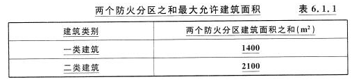 注:上述相邻两个防火分区设有自动喷水灭火系统,其相邻两个防火分区的建筑面积之和仍应符合本表的规定。