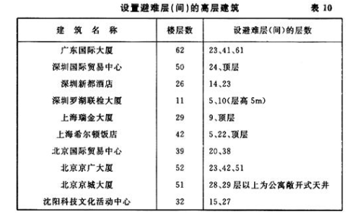 二、近几年国内高层建筑设置避难层或避难间的情况见表10。