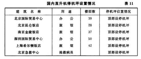 国内北京、上海等地的高层建筑,也有一些设置了屋顶直升机停机坪,见表11。
