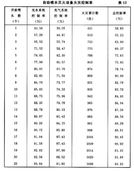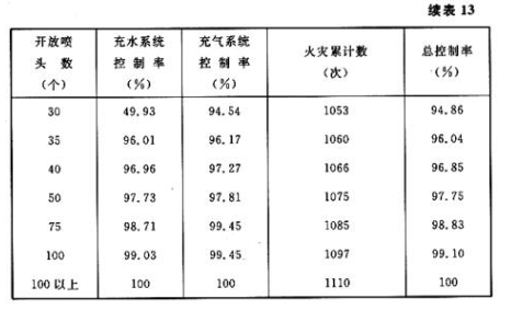 按照自动喷水系统的流量和与此相当的喷头开放数,其火灾总控制率分别达到82.79%