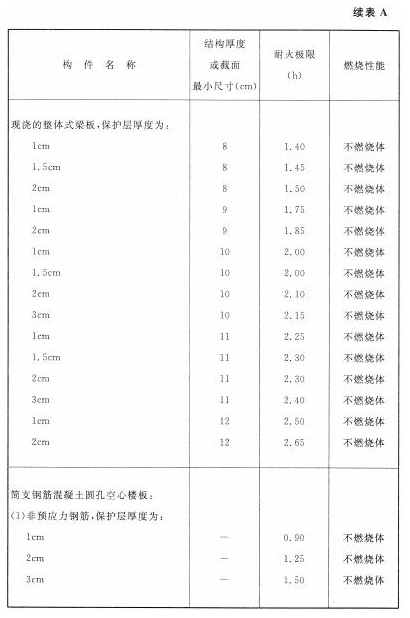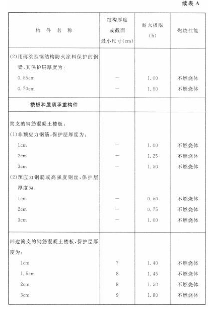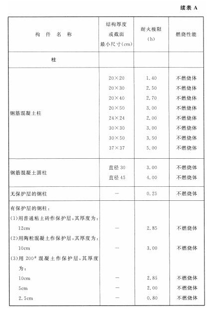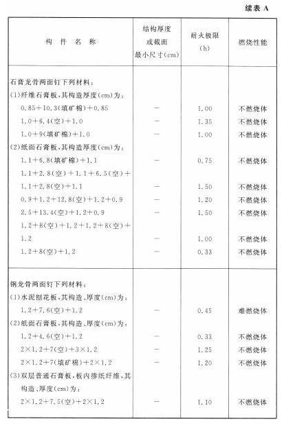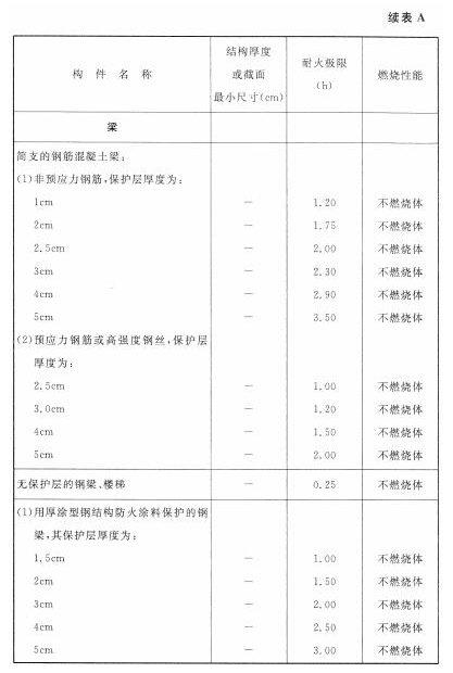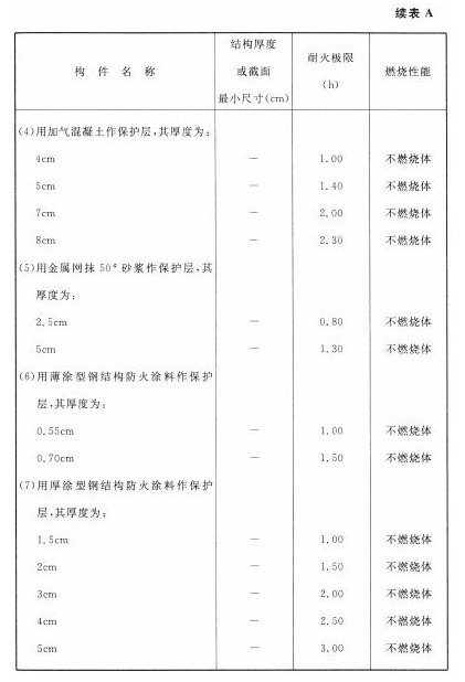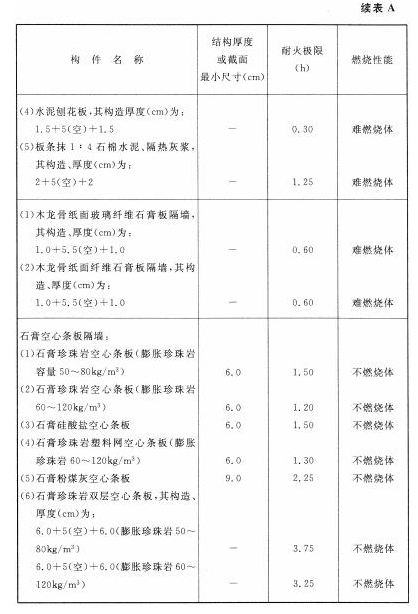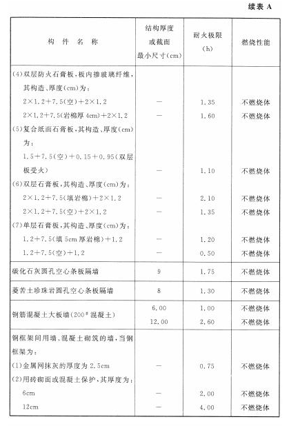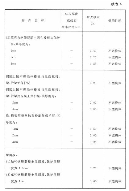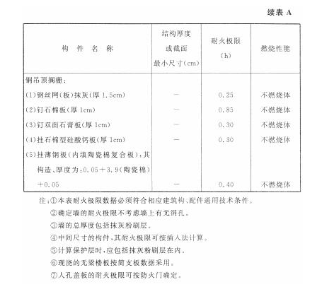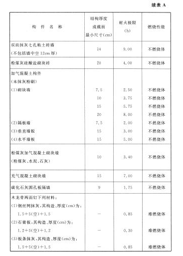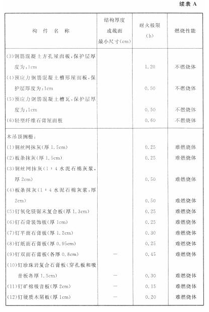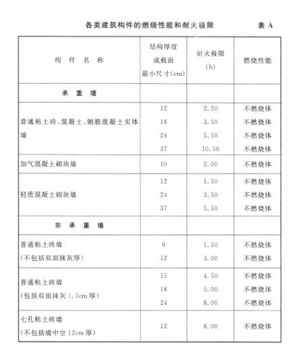 各类建筑构件的燃烧性能和耐火极限