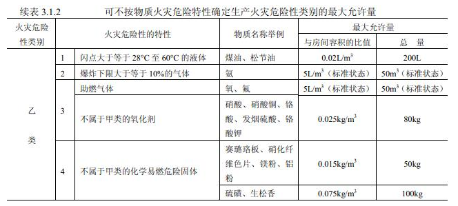 二、一般情况下可不按物质火灾危险特性确定生产火灾危险性类别的最大允许量,参见表3.1.2。