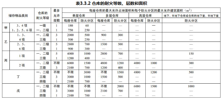 仓库的耐火等级、层数和面积除本规范另有规定者外,应符合表3.3.2的规定。