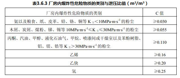 C-厂房容积为1000m³时的泄压比,可按表3.6.3选取,m²/m³。