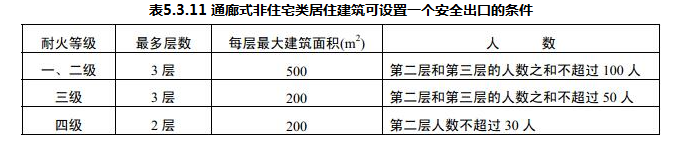 房间建筑面积小于等于50m²,且经常停留人数不超过15人时,可设置1个疏散门;