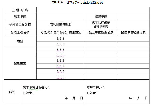 固定消防炮灭火系统的电气安装与施工应由施工单位质量检查员按表C.0.4填写,监理工程师进行检查,并作出检查结论。