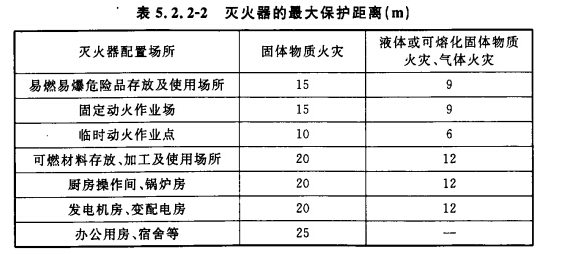 4 灭火器的最大保护距离应符合表 5.2.2-2