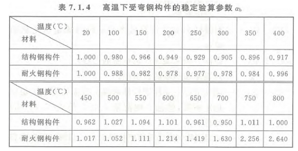 αb——高温下受弯钢构件的稳定验算参数,应按表7.1.4确定。