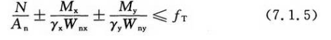 7.1.5 火灾下拉弯或压弯钢构件的强度应按下式验算:
