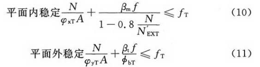 火灾下压弯钢构件绕强轴x轴弯曲和绕弱轴y轴弯曲时的稳定性应分别按下列公式验算: