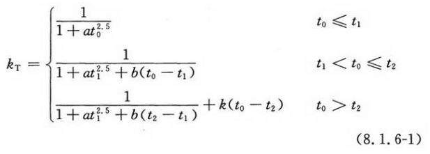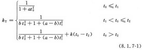 标准火灾下受火时间小于或等于3.0h的无防火保护圆钢管混凝土柱,其火灾下的承载力系数kT可按式(8.1.6-1)计算,也可按本规范附录B查表确定;对于非标准火灾,式(8.1.6-1)中的受火时间t应取等效曝火时间。
