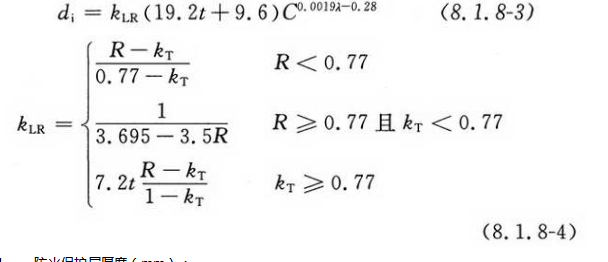 当防火保护层采用非膨胀型钢结构防火涂料时,防火保护层的设计厚度可按下列公式计算: