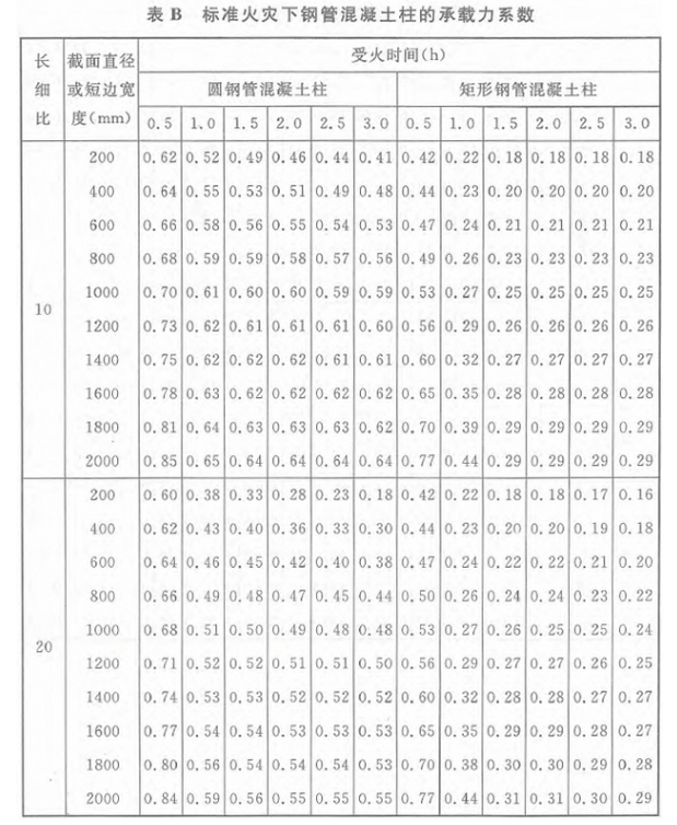 标准火灾下钢管混凝土柱的承载力系数
